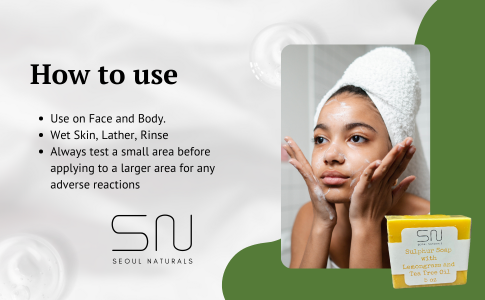 * Nourishing Sulfur Soap: Enriched with sulfur, a natural mineral that helps eliminate acne, blemishes, and skin irritations.